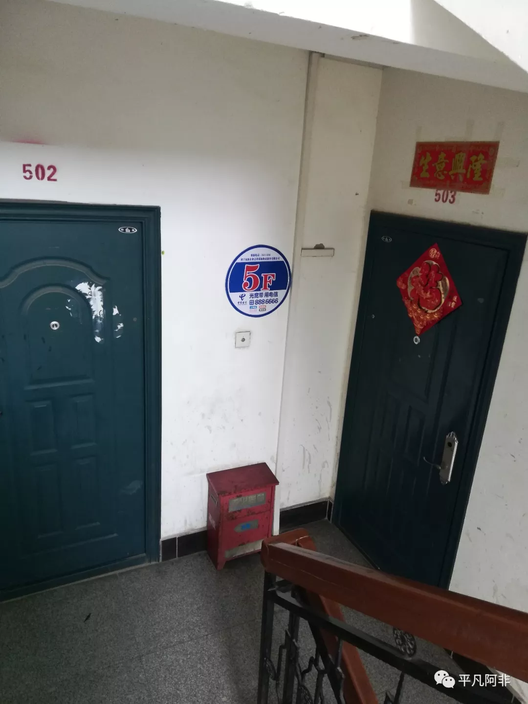 我们走进楼道,发现每层楼都只有3个门,标号为01、02、03,感觉非常纳闷,难道5楼有4个门,要不然怎么会有504呢。上去之后,发现5楼同样只有3个门。