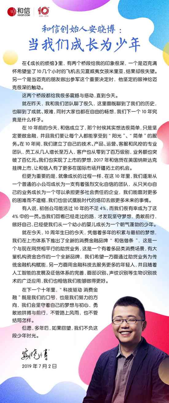 【和信十周年】来自和信创始人兼CEO安晓博的一封信(出处:和信贷社区)