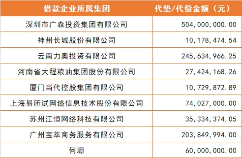 现公布第一期集团所属担保机构代偿逾期企业名单:涉及企业9家,代偿总额1,171,178,849.99元。相关信息披露如下: