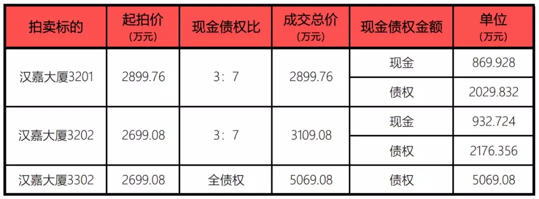 3202室,在现金债权比3:7的轮次中,最终以3109.08万元总价成交;