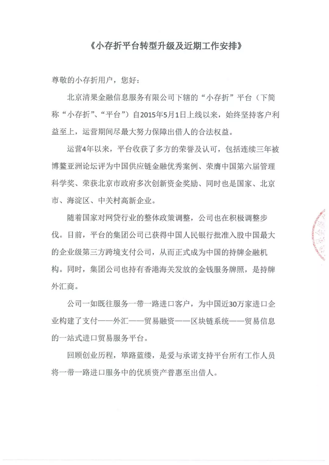 小存折 2019.11.25-18:00……小存折平台转型升级及近期工作安排