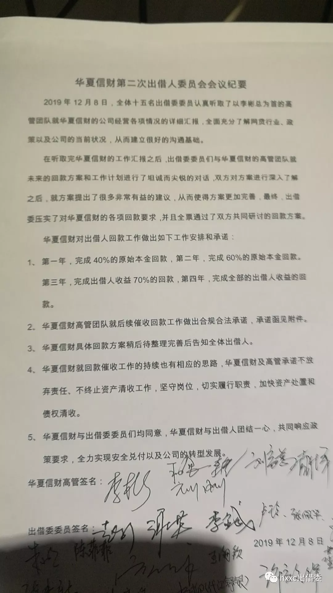 华夏信财 2019.12.9-21:00……承诺四年回款方案:前2年本金,后2年收益