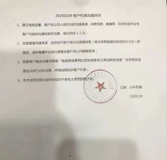 彭铁明确表示年底前没钱。但昨日彭铁与出借人达成三点共识:一是每月通报2次平台经营状况;二是恢复一个月一次平台负责人与出借人的直播;三是积极推进小牛在线处置方案,尽快落实良性清退。