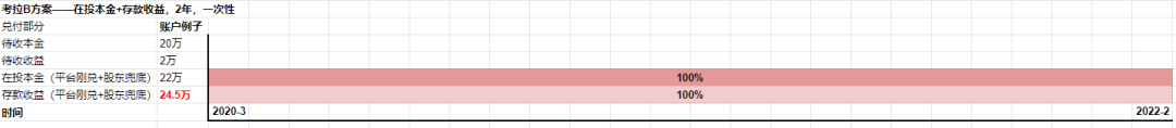 考拉B方案:100%在投本金+存款收益,2年,一次性回款兑付;