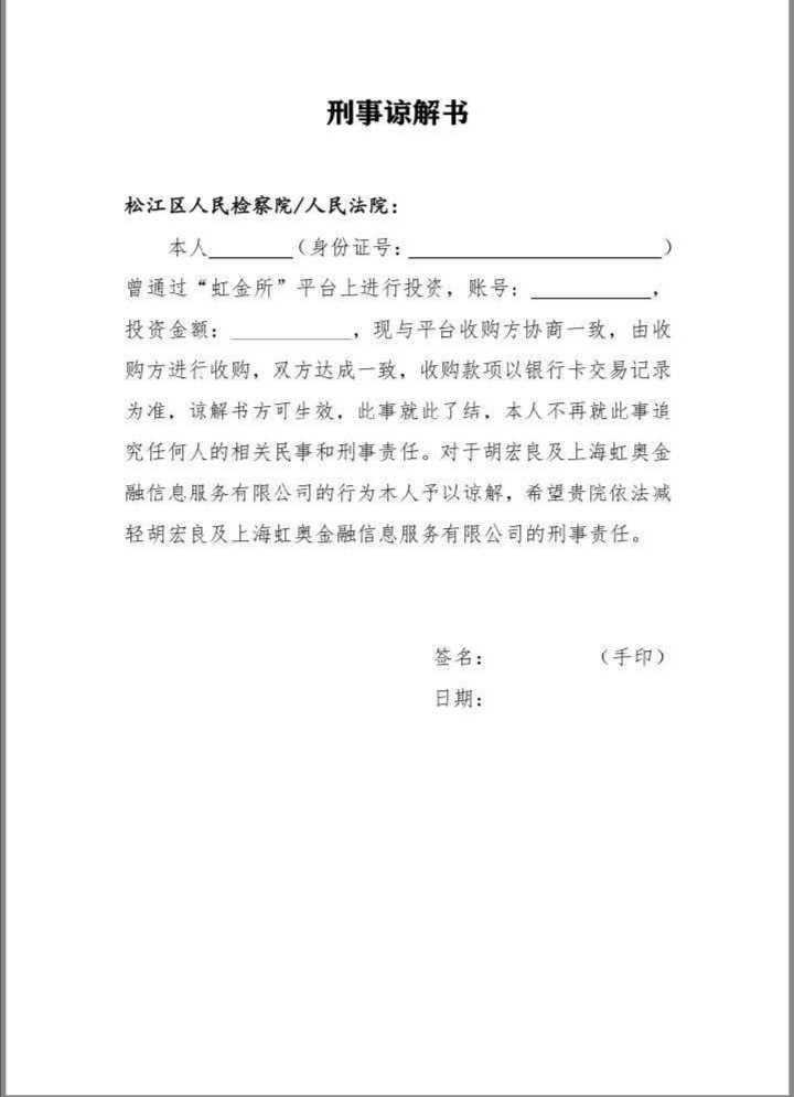 虹金所 2020.3.19……(网传)一家名为杭州花垣资产管理有限公司在对虹金所的出借人进行债权收购,比例仅2折,在签协议的过程中,还要签一份刑事谅解书