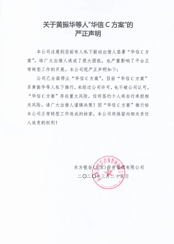 请广大出借人拒绝签署华信C方案,谨防上当受骗!