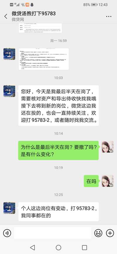 微贷网 2020.3.27-12:58……今天是我最后半天在岗了……大部分投顾都辞职了,少部分转催债的了!过去加我微信的投顾都不回信或叫我打客服+2