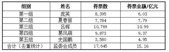 各组中得票数最多的候选人代表该组当选为监委会成员,监委会名单: