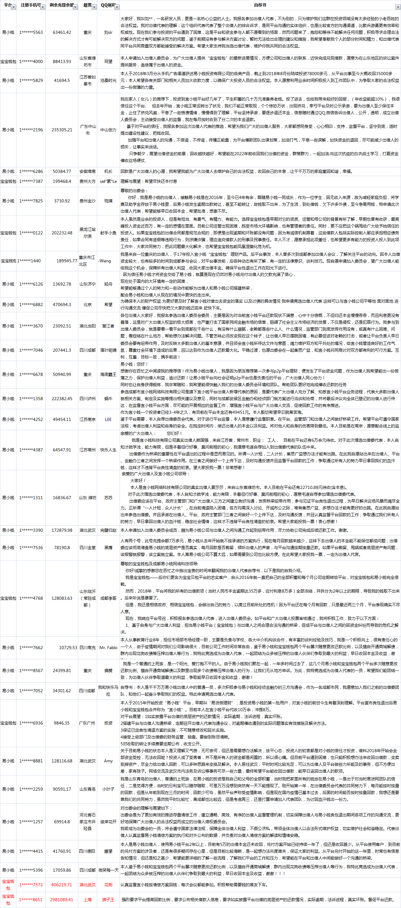 宜小钱(易小钱) 2020.4.7……平台于2020年3月7日-2020年3月30日开展了为期一月的增选出借人代表报名,截止3月30日,累计33人报名,1人弃选,有效报名32人。现将32名出借人的具体信息进行为期一周的公示