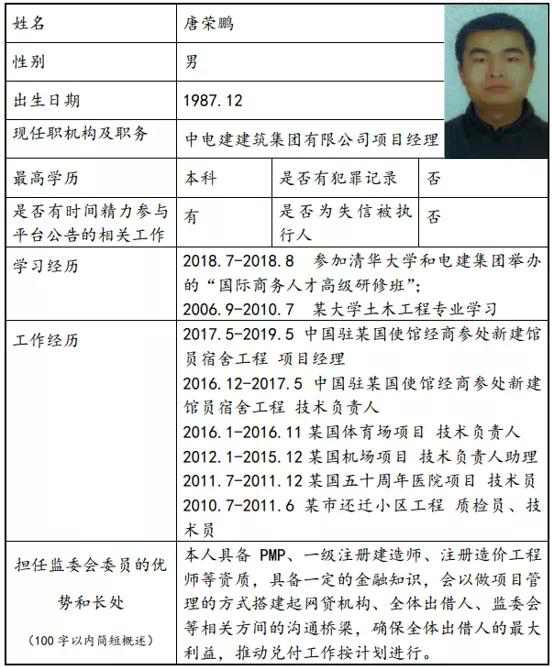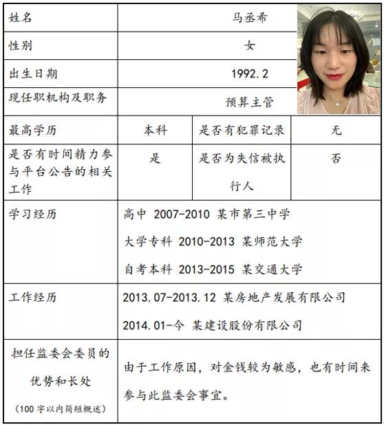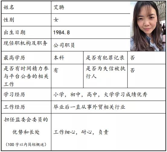 我公司监委会选举正在进行中,选举将通过深圳市互联网金融协会的深圳网贷机构退出网络投票系统进行。还没来得及的出借人可点击查看监委会选举公告以及监委会投票指引。为了让大家选举出专业、负责且有担当的监委会成员,切实维护广大出借人的利益,昨日,小随给大家展示了13-18号监委会候选人的简历,今日,小随将继续为大家展示19-24号监委会候选人简历,希望能帮助各位更好地了解30位候选人的特点,以便做出投票选择。