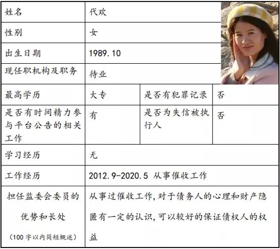 我公司监委会选举正在进行中,选举将通过深圳市互联网金融协会的深圳网贷机构退出网络投票系统进行。还没来得及的出借人可点击查看监委会选举公告以及监委会投票指引。为了让大家选举出专业、负责且有担当的监委会成员,切实维护广大出借人的利益,昨日,小随给大家展示了19-24号监委会候选人的简历,今日,小随将继续为大家展示25-30号监委会候选人简历,希望能帮助各位更好地了解30位候选人的特点,以便做出投票选择。