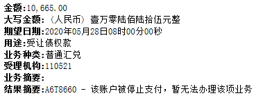 天涯好收益 2020.6.12……债权收购方银行对公账户被限制转账