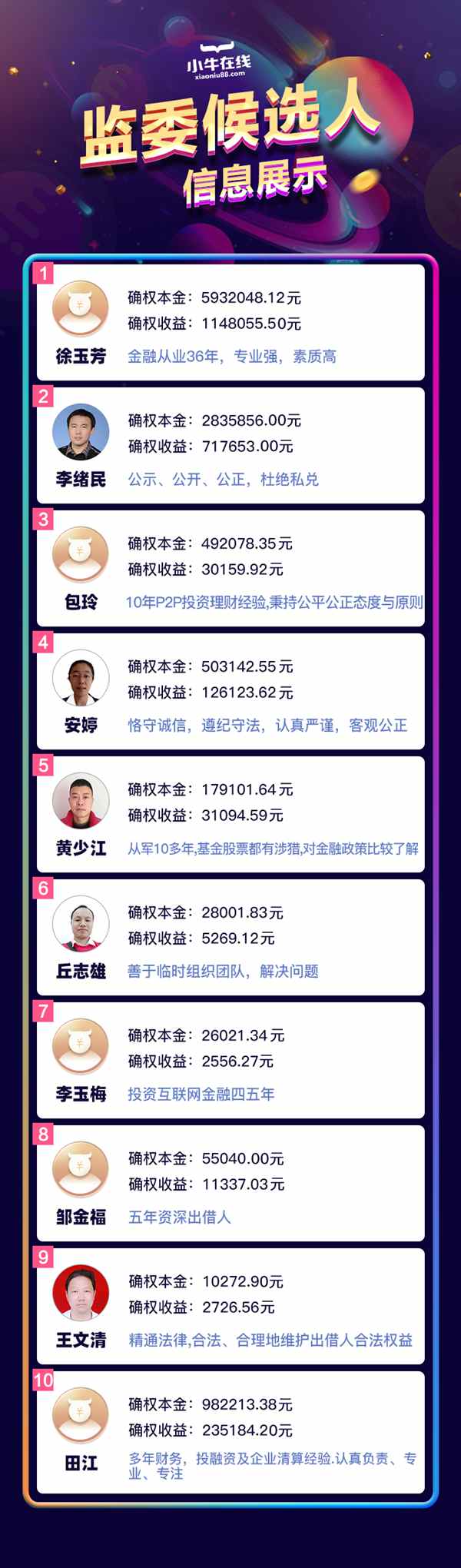 小牛在线 2020.6.18……监委候选人第一波再曝光,请pick你的“意中人”。小编这次拼尽了头上仅剩的几丝秀发,做出了一张美美的海报,你看这里面是不是总有你喜欢的一款