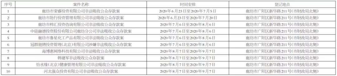 廊坊十起非法吸收公众存款案,正在核查登记!