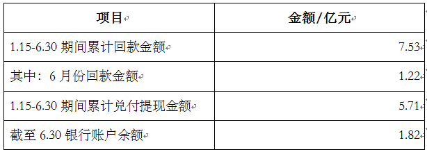 平台自宣布良退以来,截止目前已经完成四期兑付,第五期兑付工作正在准备中。现将良退以来的回款、兑付等相关数据向广大出借人进行公布。自2020年1月15日起至2020年6月30日止,回款与兑付账户余额数据如下: