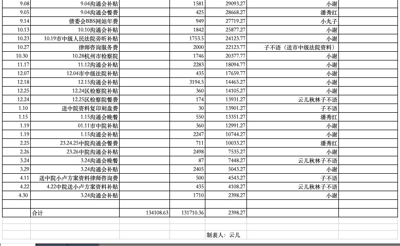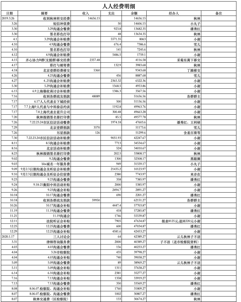 人人爱家金融 2021.5.17……5月17日人人爱家债委会公示经费明细