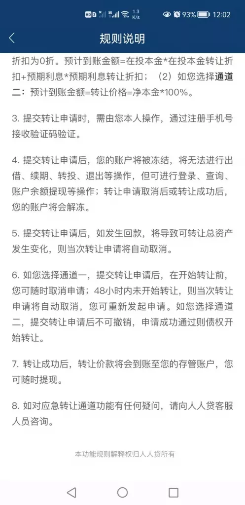 通道一,继续开通,能通过的申请基本还是“在投本金”最高7折,实际根据“在投本金”的数额去尝试适合的折扣数,这类打折下车申请的规律就是从高到底去尝试,从反馈的情况看,人人贷通道一申请成功后到账还是比较顺畅。