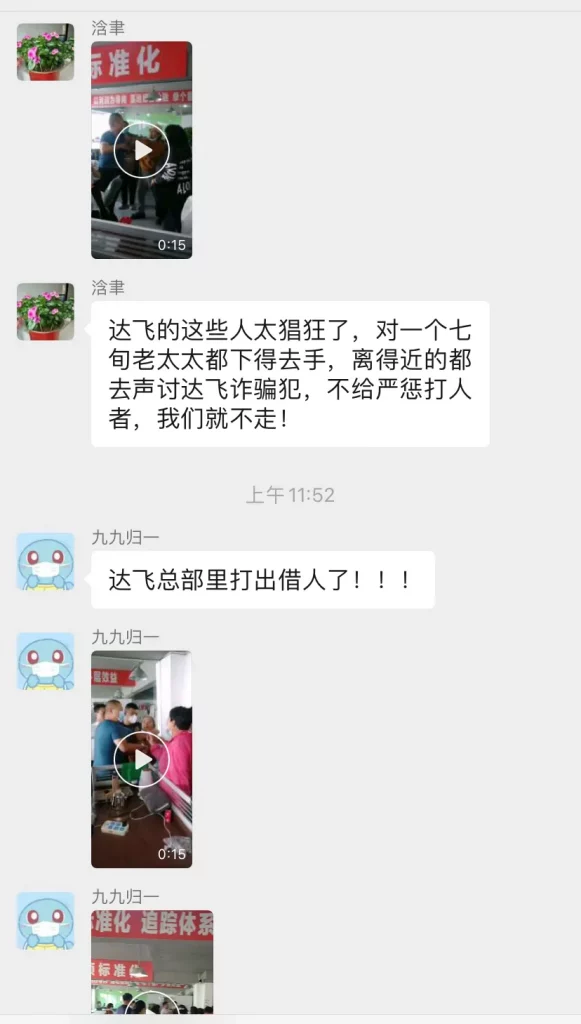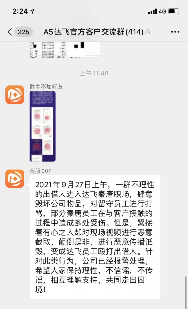 今天在出借人群里,看到有人发视频说达飞秦唐办公室的工作人员打老人了,本来还在想再怎么着不能打人。