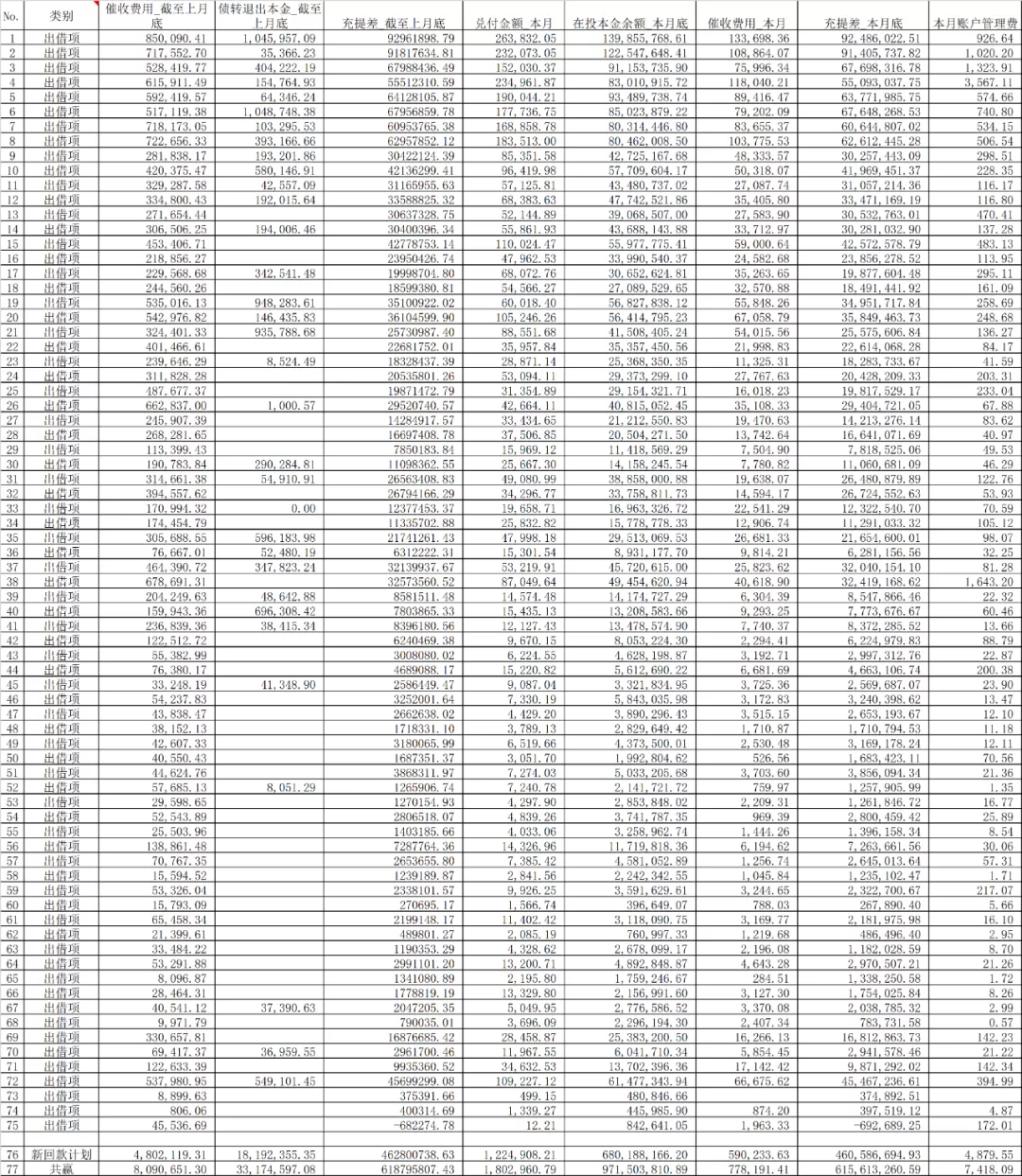 (4)  本月,以9月初新形成的整体统一回款计划充提差为分母的催回比率为0.387%,回款比率为0.261%;以9月初新形成的整体统一回款计划在投本金为分母的催回比率为0.267%,回款比率为0.180%。