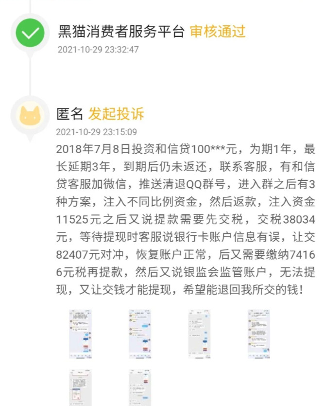 今天说说网贷杀猪盘吧,昨晚被黑猫上一个和信贷借友的投诉给雷到了。
