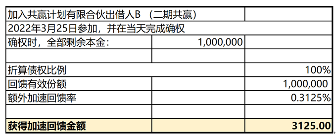 B:二期共赢,在2022年6月30日之前加入,按照确权债权份额的100%计算