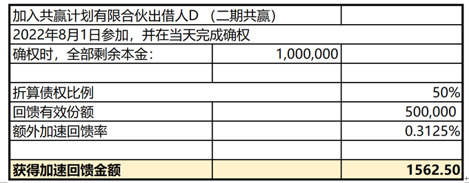 D:二期共赢,在2022年6月30日之后加入,按照确权债权份额的50%计算