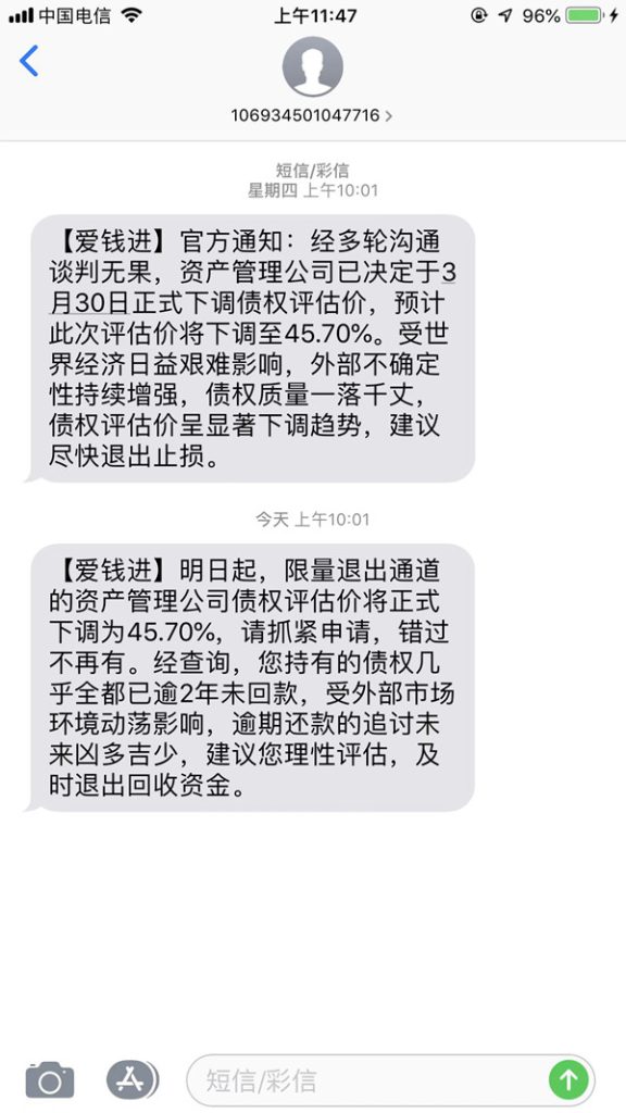 爱钱进网贷平台 2022.3.29……[爱钱进]官方通知:受世界经济日益艰难影响,外部不确定性持续增强,债权质量一落千丈,您持有的债权几乎全都已逾2年未回款,逾期还款的追讨未来凶多吉少