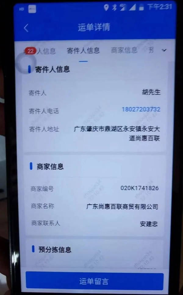 据PP出借人反应邮寄快递商家为“广东尚惠百联商贸有限公司”