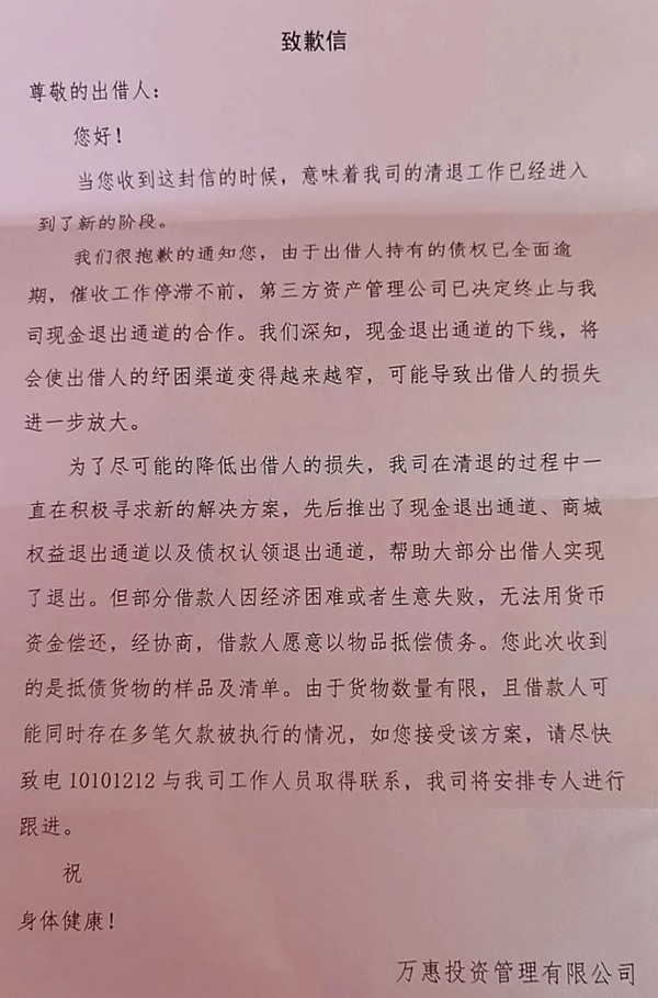 这是一种带有试探性目的的行为,从致歉信我们可以看出平台还是带有委婉语气,无非现在是游走在法律的边缘,毕竟他是第一个敢吃螃蟹的平台,但是如果出借人没有抵触意识,或者说默不发声,后面强制还是有可能发生的。