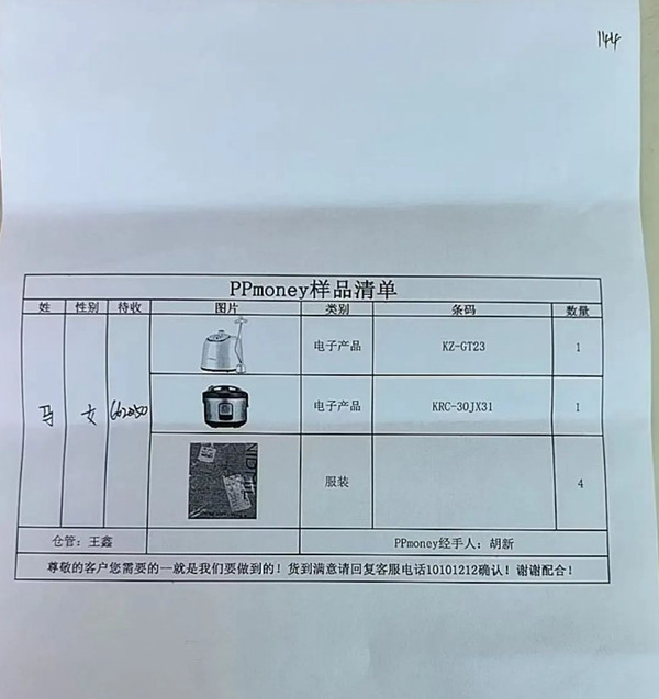当马女士拿到包裹后,发现收到的是物品和一封信件,当打开信件时才反应过来是PP平台邮寄来的以物抵债。因为马女士没有再登录过平台APP,也从未申请过以物抵债,是平台主动邮寄物品,紧接着联系了京东快递员要求拒签,快递员回应已经签收,无法拒签。