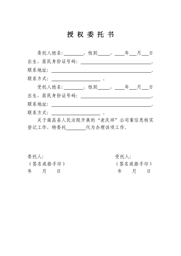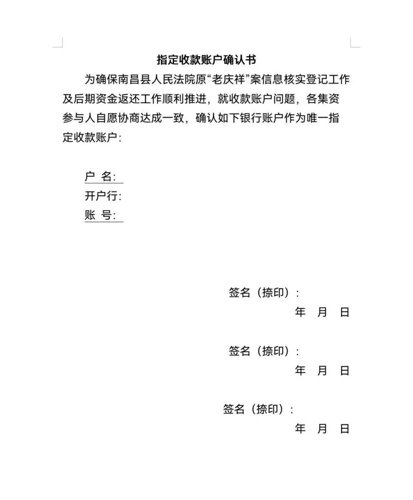 南昌县人民法院关于原“老庆祥”案集资参与人线下信息核实登记通告