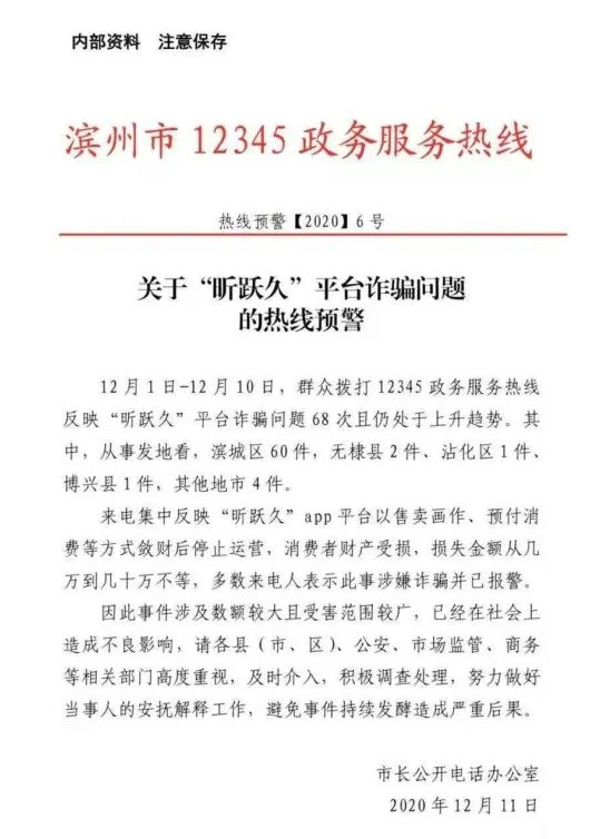 “淘画网”“昕跃久”平台诈骗已得到市长热线高度重视,并要求相关部门及时介入调查处理,这对受损群众来说是一个重大的利好消息,昊天说过,每个人都要为自己的行为,而付出代价!这是恒古不变的道理,下面是市长公开电话办公室发出的通告!