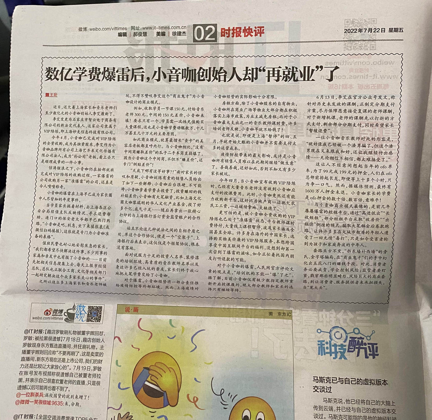 音乐教培机构“小音咖” 2022.7.22……【媒体报道】时报快评:套路亘古不变