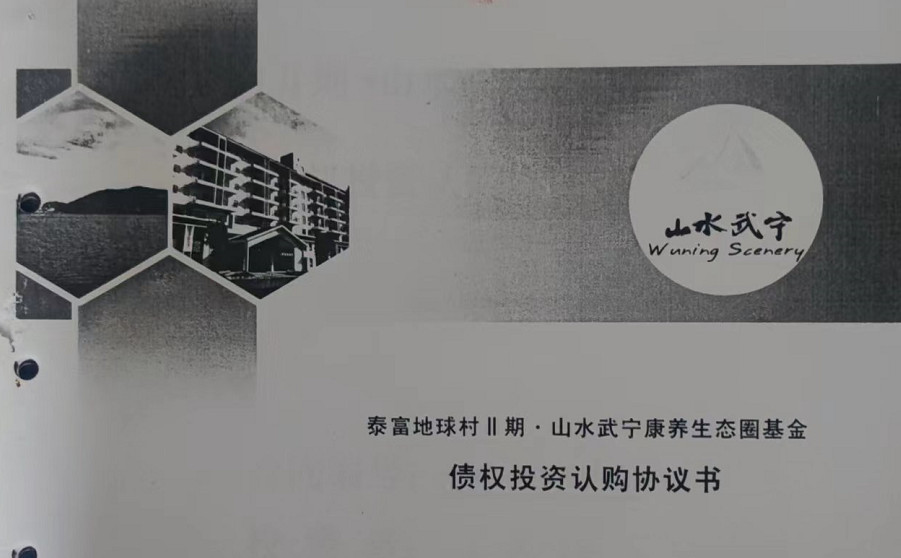 “张叔叔,我们是亲戚,有这么好的投资项目,我肯定不能忘了您,这个泰富地球村II期山水武宁康养生态圈基金是国际大公司,绝对靠谱。”据这位亲戚介绍,张老了解到该项目有“高额分红、保本高息”等服务,又是“国际”大公司,非常符合他的投资意向,当即就报名去实地考察。