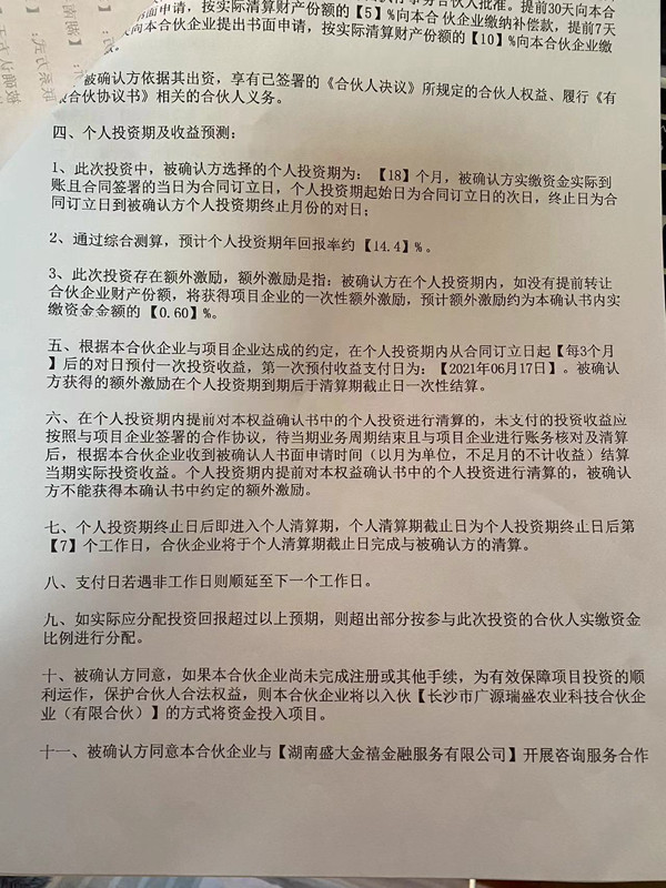 湖南盛大金禧金融服务有限公司(年回报率15%、号称二十余年“0违约”) 2022.11.4……【官方答复】湖南省永州市冷水滩区金融办2022-11-04 17:34:43答复:网友您好,留言已收悉,现答复如下:针对您反映的问题,冷水滩区金融办联合区公安分局经侦大队进行了初步调查,并在宋家洲派出所约谈了永州盛大金禧金融服务有限公司在冷水滩区的相关负责人。经初步调查:永州盛大金禧金融服务有限公司系湖南盛大金禧金融服务有限公司的控股子公司,投资人在永州盛大金禧公司投资的资金全部归集到其母公司统一管理。据永州盛大金禧公司反馈:为防范电信诈骗,各银行加强账户管理,釆取”断卡”行动,对其母公司的部分银行账户进行了锁定,导致其相关账户资金无法划转,从而影响了客户投资的资金及时兑付。目前,其母公司正在积极与各相关银行沟通解锁,争取尽快兑付客户投资资金。同时,我们要求永州盛大金禧公司进一步积极向其母公司汇报,督促母公司尽快解卡筹措资金兑付给有关投资人,并向投资客户做好沟通解释答复工作。同时,我们也建议您进一步与该公司沟通协商,如未能达成一致意见,您可以根据您与该公司签定的《投资协议》约定,通过司法诉讼途径来维护您的自身权益。……湖南省邵阳市双清区打击和处置非法集资工作领导小组办公室2022-11-04 19:32:42回复:您好!此案公安机关正在受理初查中!