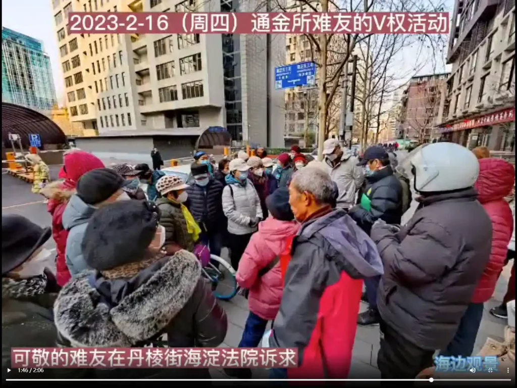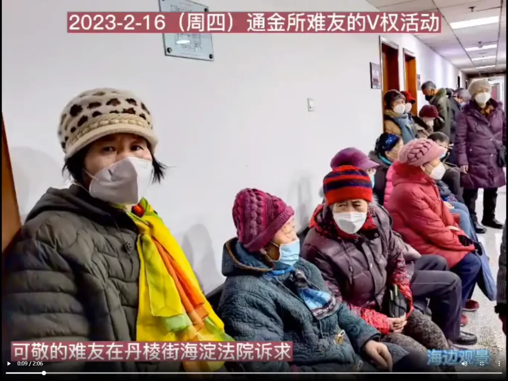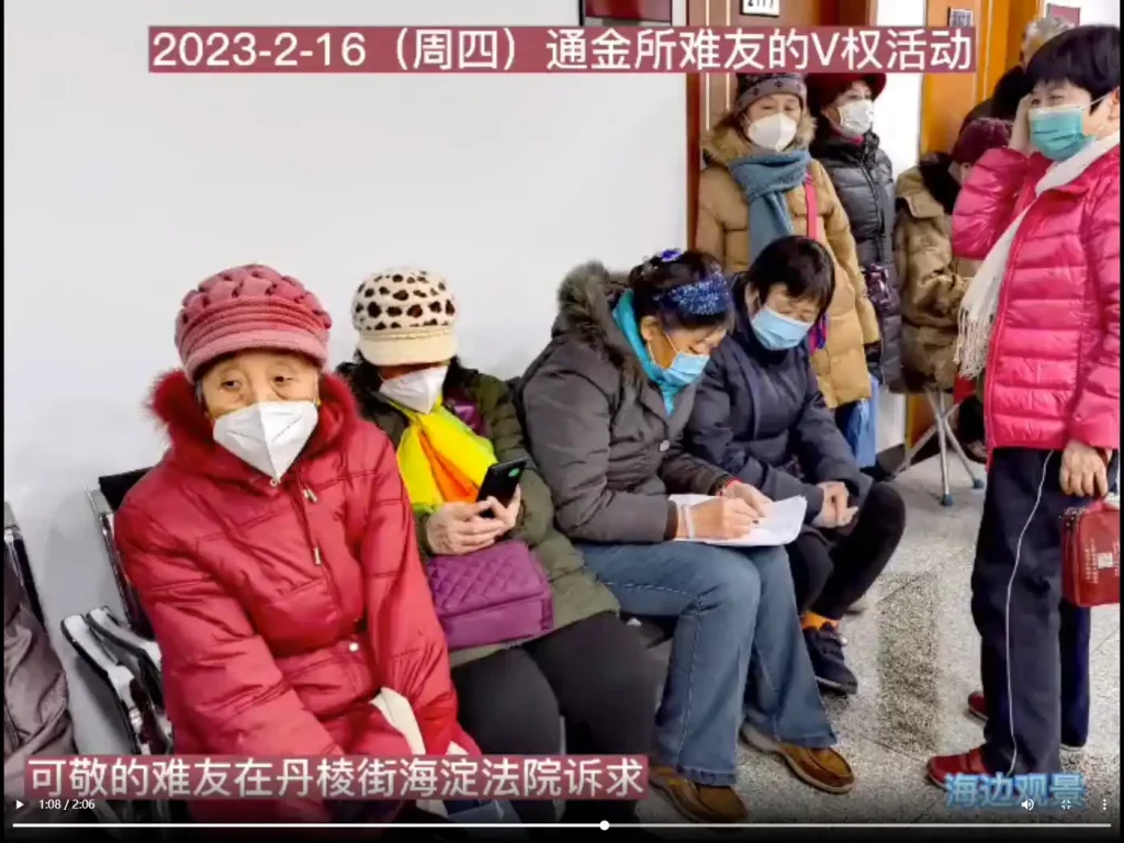 2月16日(周四)是海淀法院的法官接待日。上午,5名出借人代表前去反应问题,樊法官接了他们,交流了1个多小时;下午近70名出借人再次来到海淀法院(丹棱街)诉求。他们见到了通案主审法官徐进,听取了徐厅长的介绍。与此同时,通金所另一波出借人正在山后法庭诉求,这是每周四都在进行的V权活动。