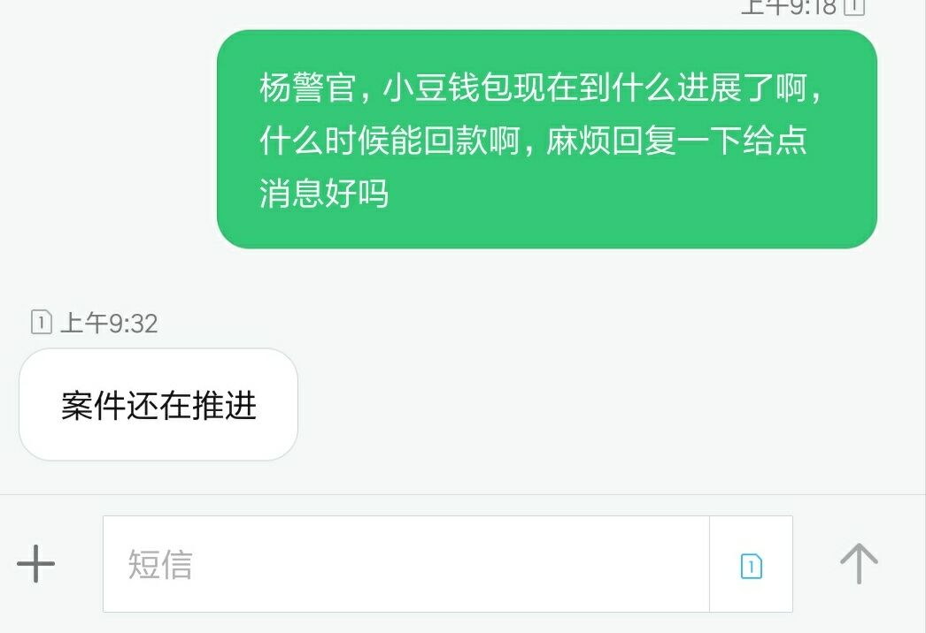 小豆钱包 2018.7.4-21:28······案件还在推进······警方还有个回复的,我另外一个平台,一个P都没有······这些p2p是不是全是骗子,一查全部非法融资······其实十个月已磨了大家的耐心,心理上基本认倒霉了······别说JC不做事,这都很正常,小案子都是这样,这种案子就跟打架斗殴没什么区别,人家没工夫把时间耽误在这······一鼓作气,再而衰,三而竭,慢慢就完了······表面上你挣钱了,忽然雷了,白玩儿,挣得那些羊毛,根本连本儿都不够······对啊,就跟养猪一个意思,把猪养肥了,表面天天嘛也不干,白吃白喝,肥了就宰,老实上班吧,天上接饼不靠谱······小豆雷的时候,我就说小诸葛迟早的事,结果说出来还给人骂